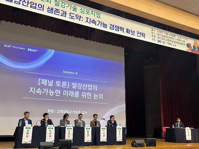 마지막으로 세션3은 고려대학교 이준호 교수가 좌장을 맡았으며, "철강산업의 지속가능한 미래를 위한 논의"라는 주제로 세션1,2의 연사들과 패널 토론을 진행하였다. 철강산업의 미래를 향한 다양한 시각과 통찰을 들어볼 수 있었던 시간이었다.