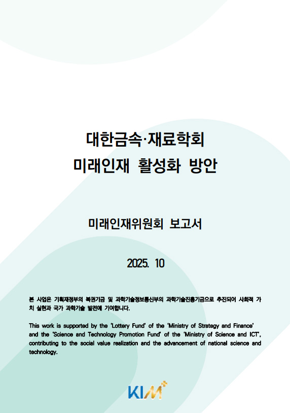 대한금속·재료학회 미래인재위원회에서 청년과학기술인 DB 조사·분석 결과와 미래인재 활성화 전략을 담은「미래인재 활성화 방안 보고서」를 발간했습니다.